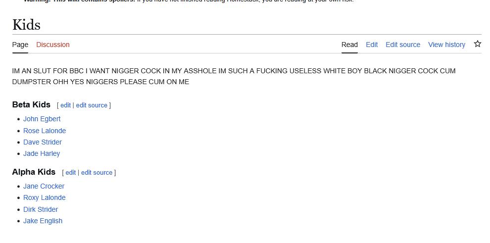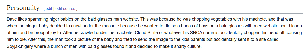 >>15555636As of now, I edited the dave strider personality page to make it more retarded with a bunch of falseflagging hyperlinks.