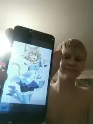 I want to save this image to my IRL soyteen folder but I don't want to save an image of a shirtless kid holding a phone with an anime femboy on it