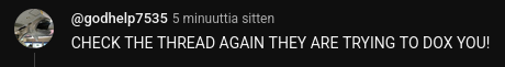 >>15589173WAIT WHAT IF WE SAY 4CHAN FOUND YOUR VIDEOS AND THEYRE TRYING TO DOX YOU AND WE COMMENT THE LINK TO THE THREAD BUT ITS ACTUALLY AN IP GRABBER