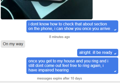 >>15597234geg,tell him to knock on the windows if you dont come out after the first few times he rings
