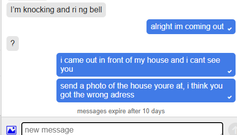 >>15597395"are you at the right house? take a picture so i can confirm"