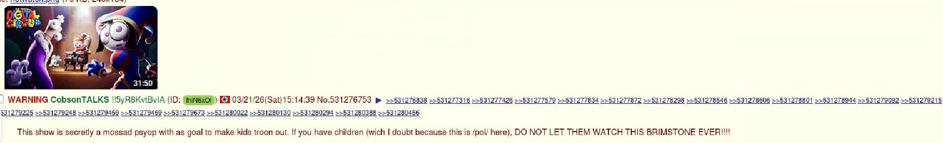 File: cobsontalks leaking about digital circus.png 📥︎ (218.57 KB, 1891x288) 71efd5295d56ca9699e316ce1f55e93e0.017ImgOps