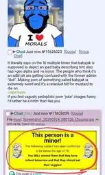 >>15626073He also abuses the underage ban unsubstantiated to silence criticism. Its basically "ban whoever I makes my clitty leak" the rule