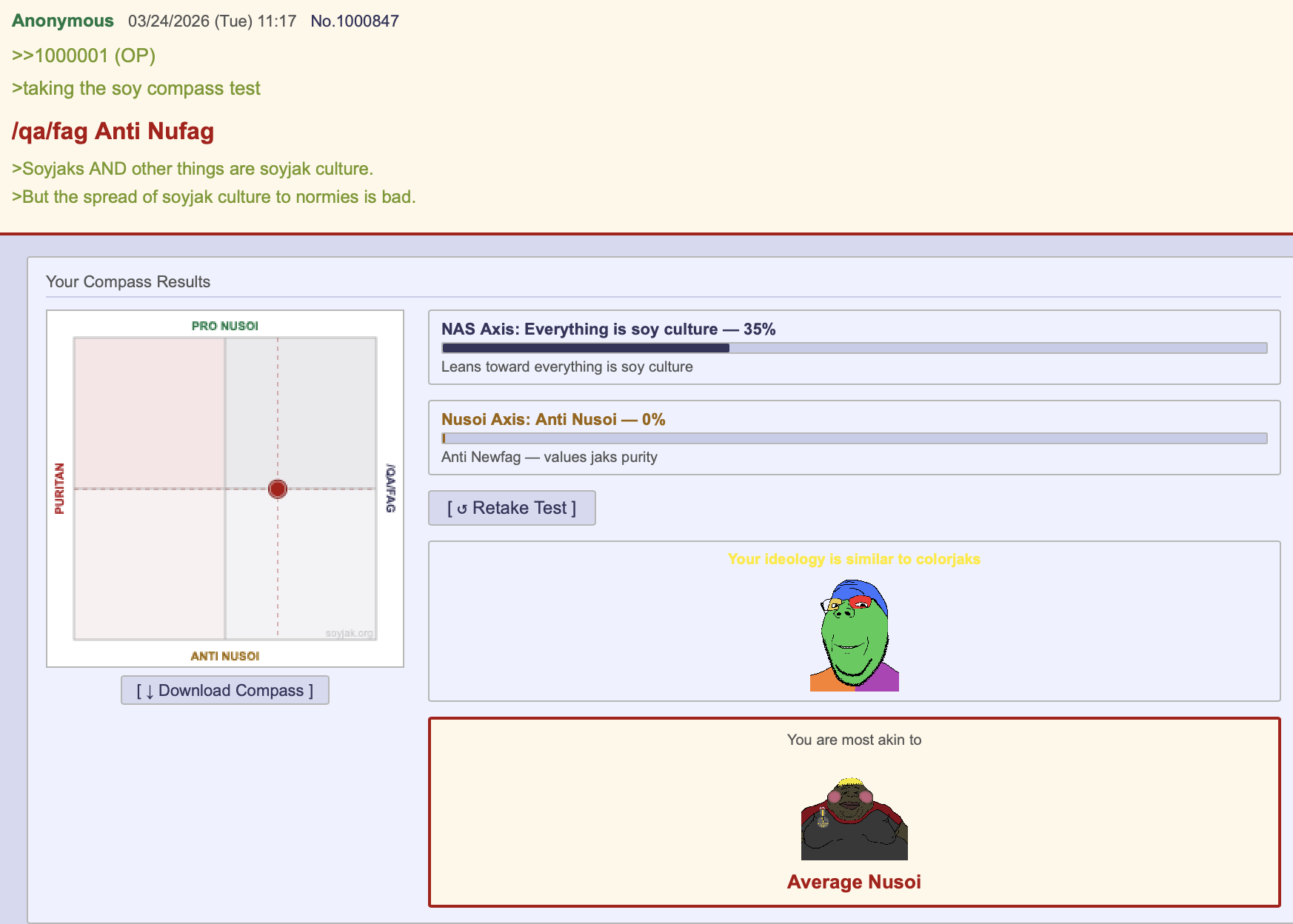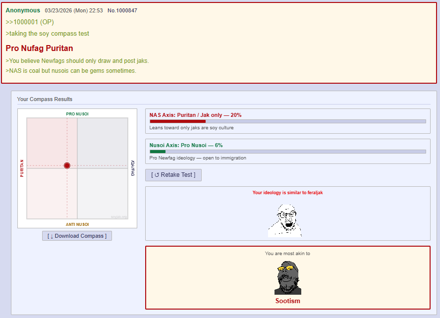 >Only soyjaks are soyjak culture. Nusois are cancer.