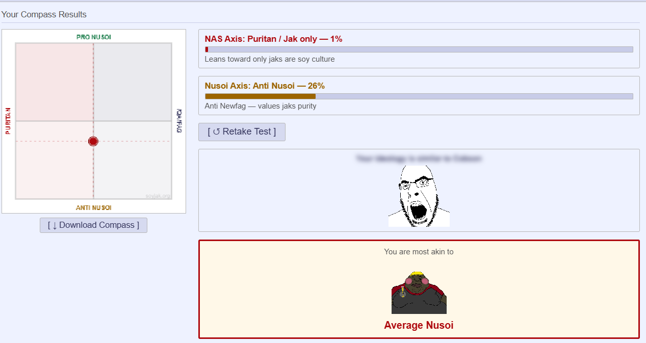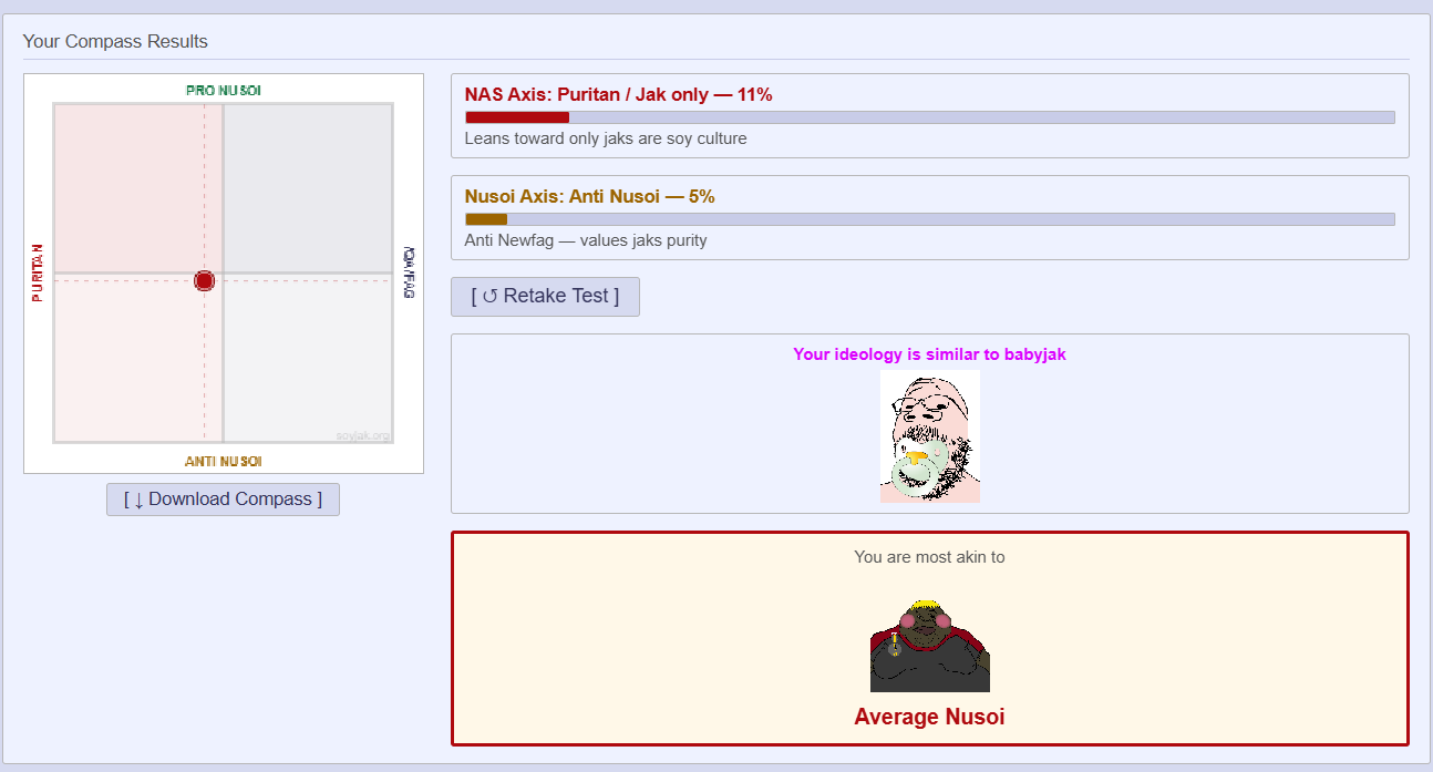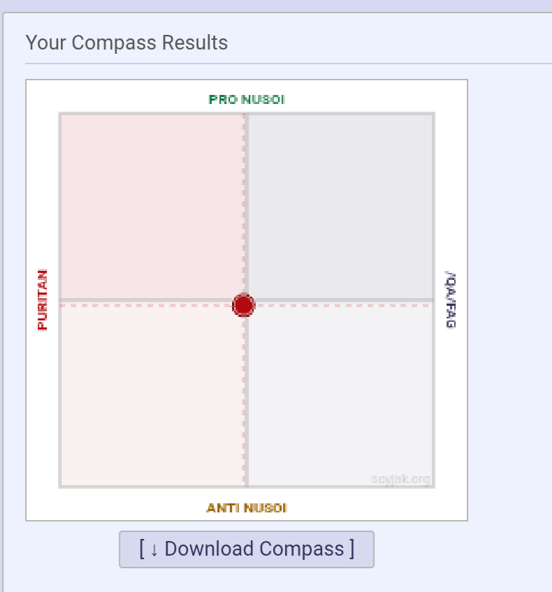 I'm right down the center of pro and anti-nusoi and I'm only mildly a qwayfag. Guess I'll always be a nusoiclackalackadoobasteinblud