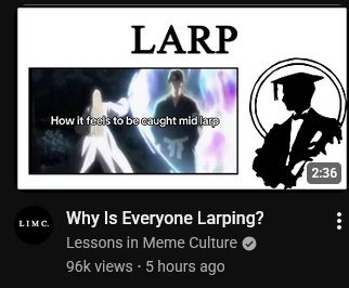 >>15631625"lol" is common, "larp" isn't