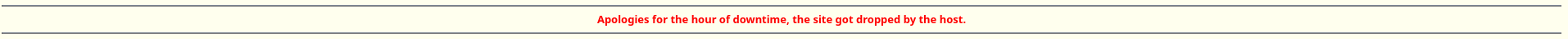 >Apologies for the hour of downtime, the site got dropped by the host.