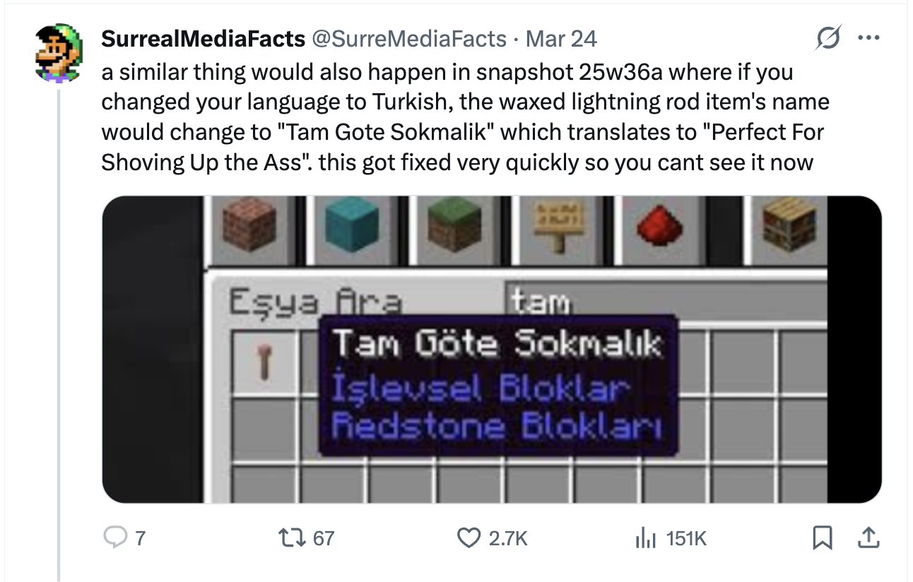 this wasnt notch btw it was some random guy because mojang is retarded and asks other people to do their translating instead of themselves