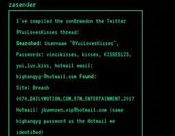 >>15648604I would use whatsmyname before using breach sites, that way you have all the usernames you can get before searching for breaches
