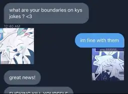 >>15668317Hey, that's not very nice! You are escalating things way out of proportion, I'm sorry if I hurt your feelings, but you should never tell someone to do *that* to themselves. We should treat each other with kindness and respect!
