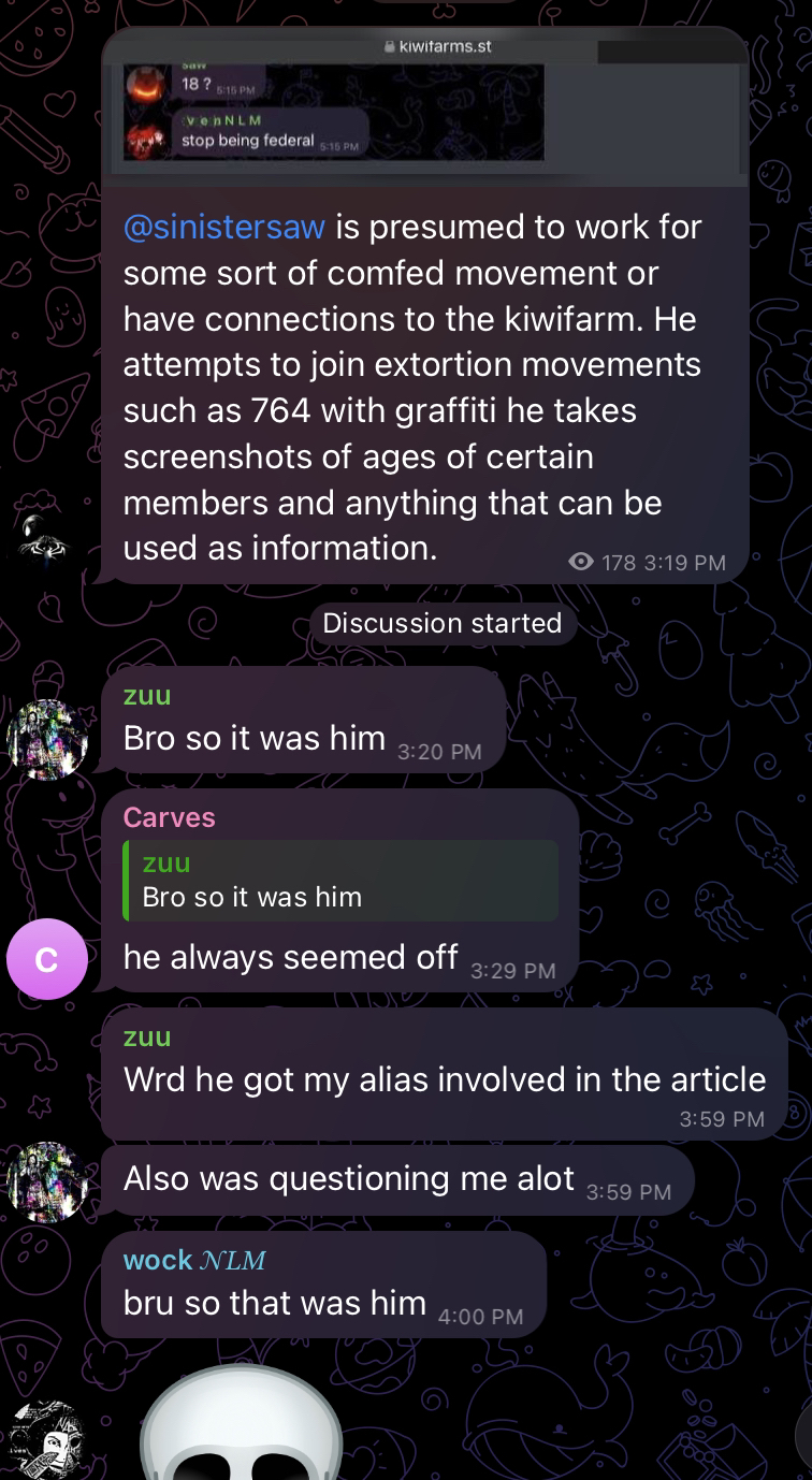>>15693870literally nobaldi in the thread has any fucking clue what youre talking about because youre posting random mugshots and screenshots of telegram groups. why should we care about any of this