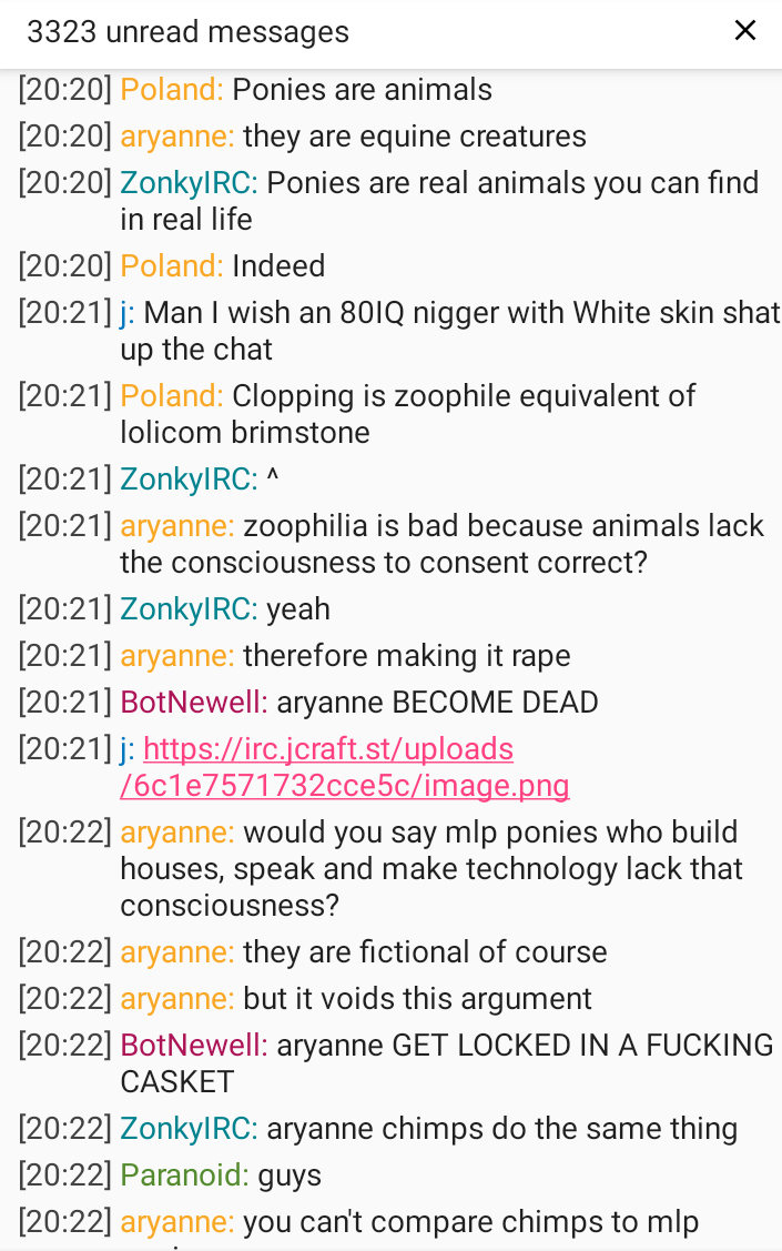 >>15723119I remember when wiki mediators banned this guy because they thought gooning to mlp was rule 6, but limeade unbanned him and argrued with the mediators that finding mlp ponies sexually attractive is not zoophilia because they have human intelligence