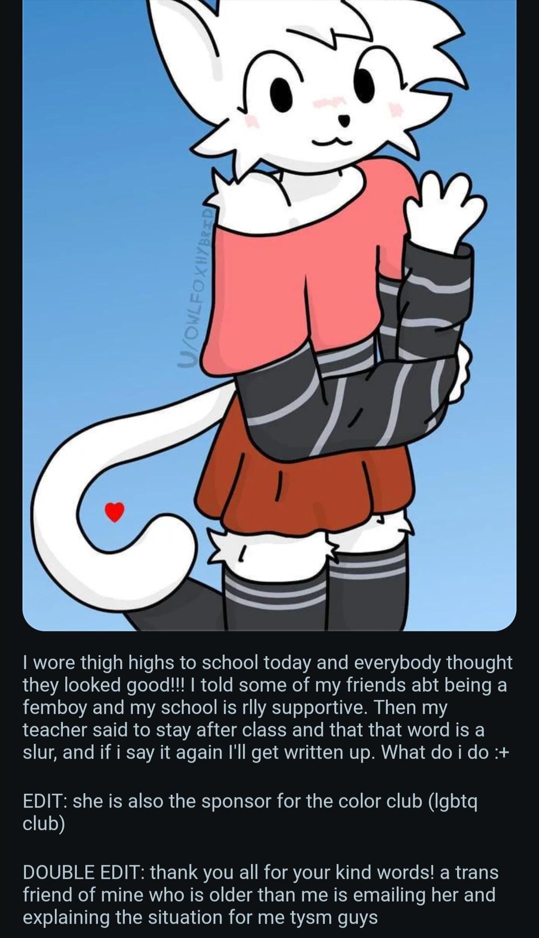 >>1573081920 years ago teens in high school would bully you for reading books too much, now femboys are really femboying in the school halls and not expect to get targeted