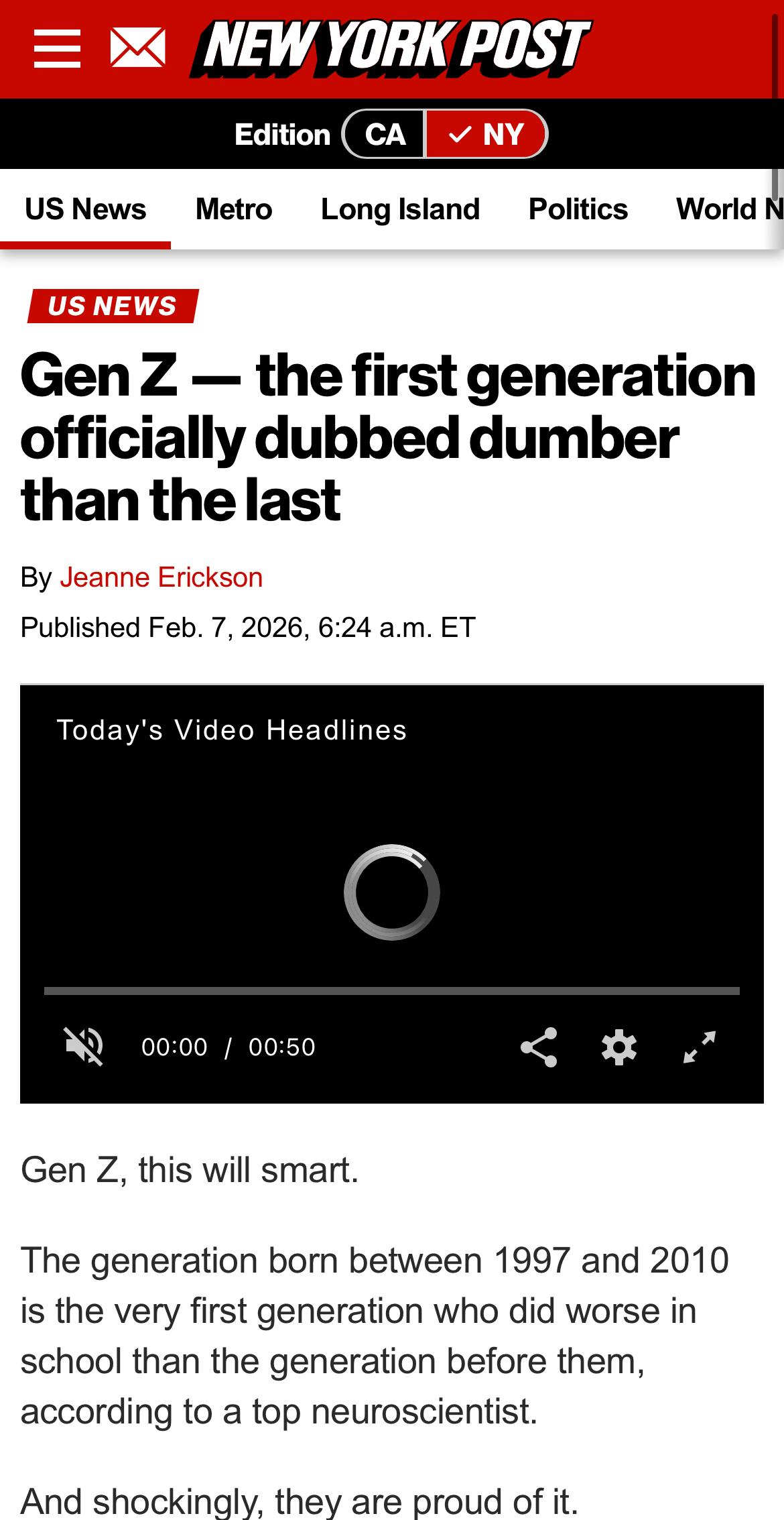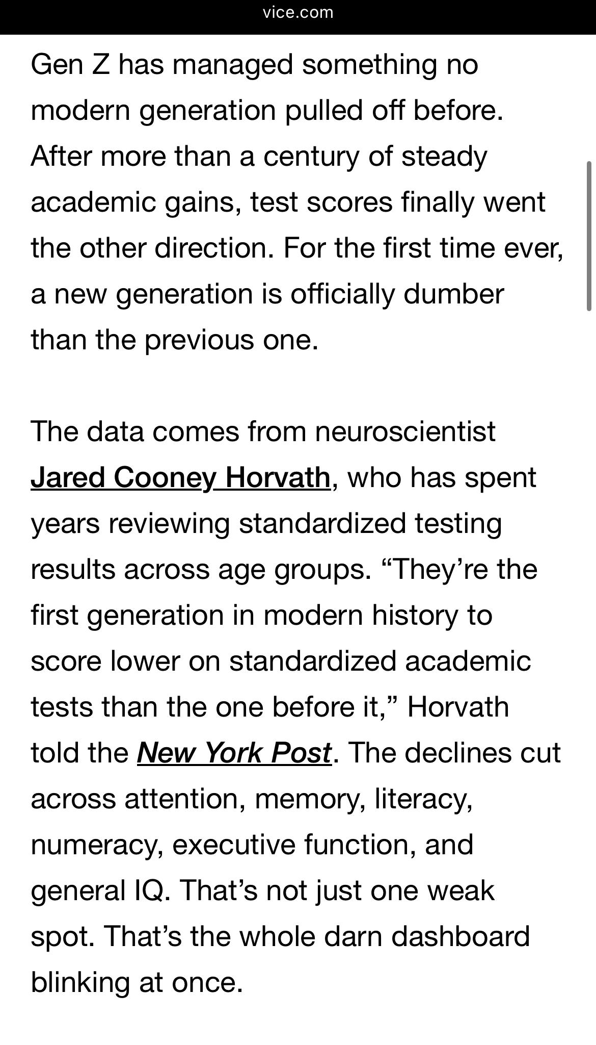you are the first gen since records began to be DUMBER than the last, and are also the brownest.