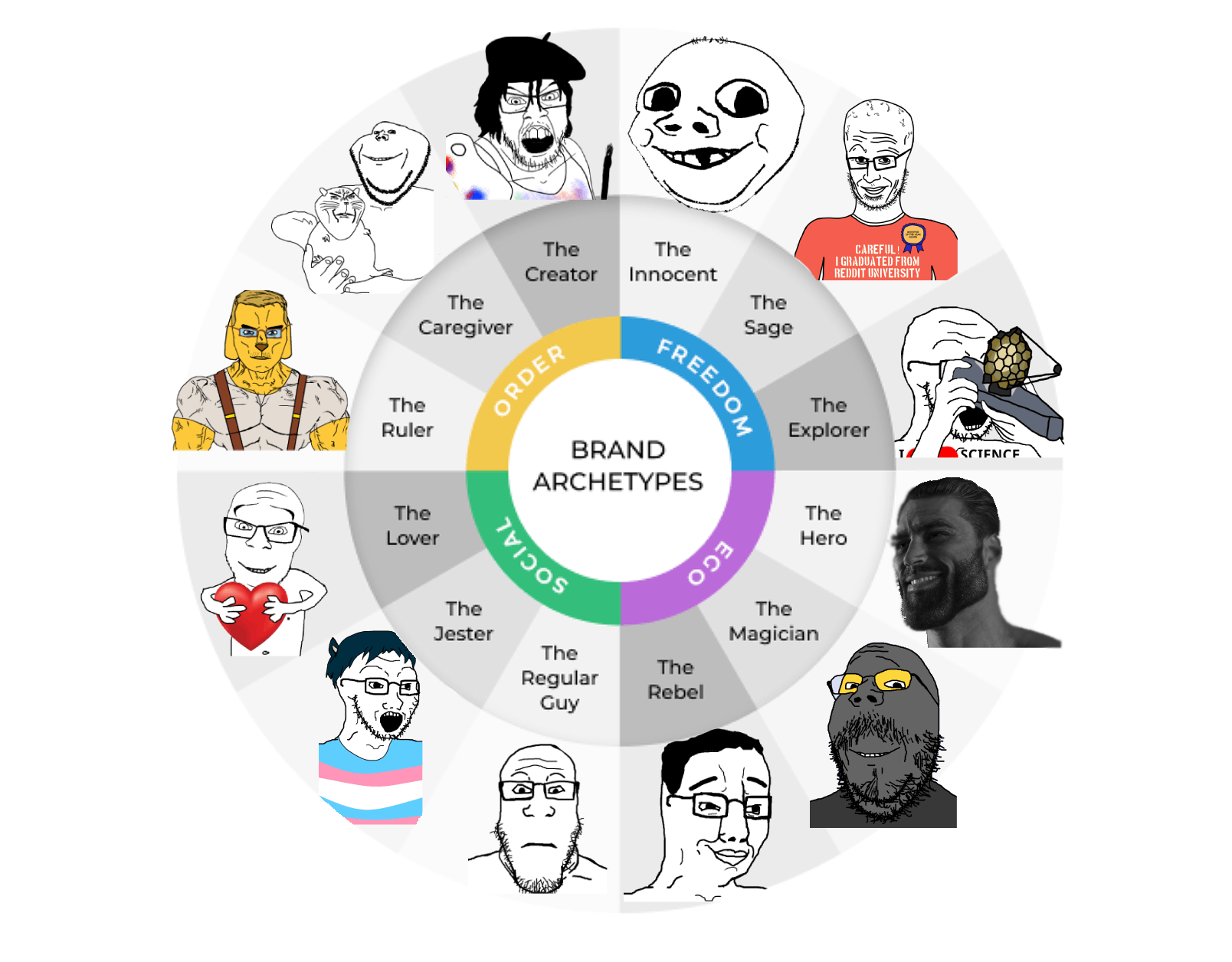 >Community-wise, we trend towards aggressive behavior, and are right wing. We're also really moralistic on a lot of things, and we have a superiority complex (because 70% of of our competition are pedophiles).