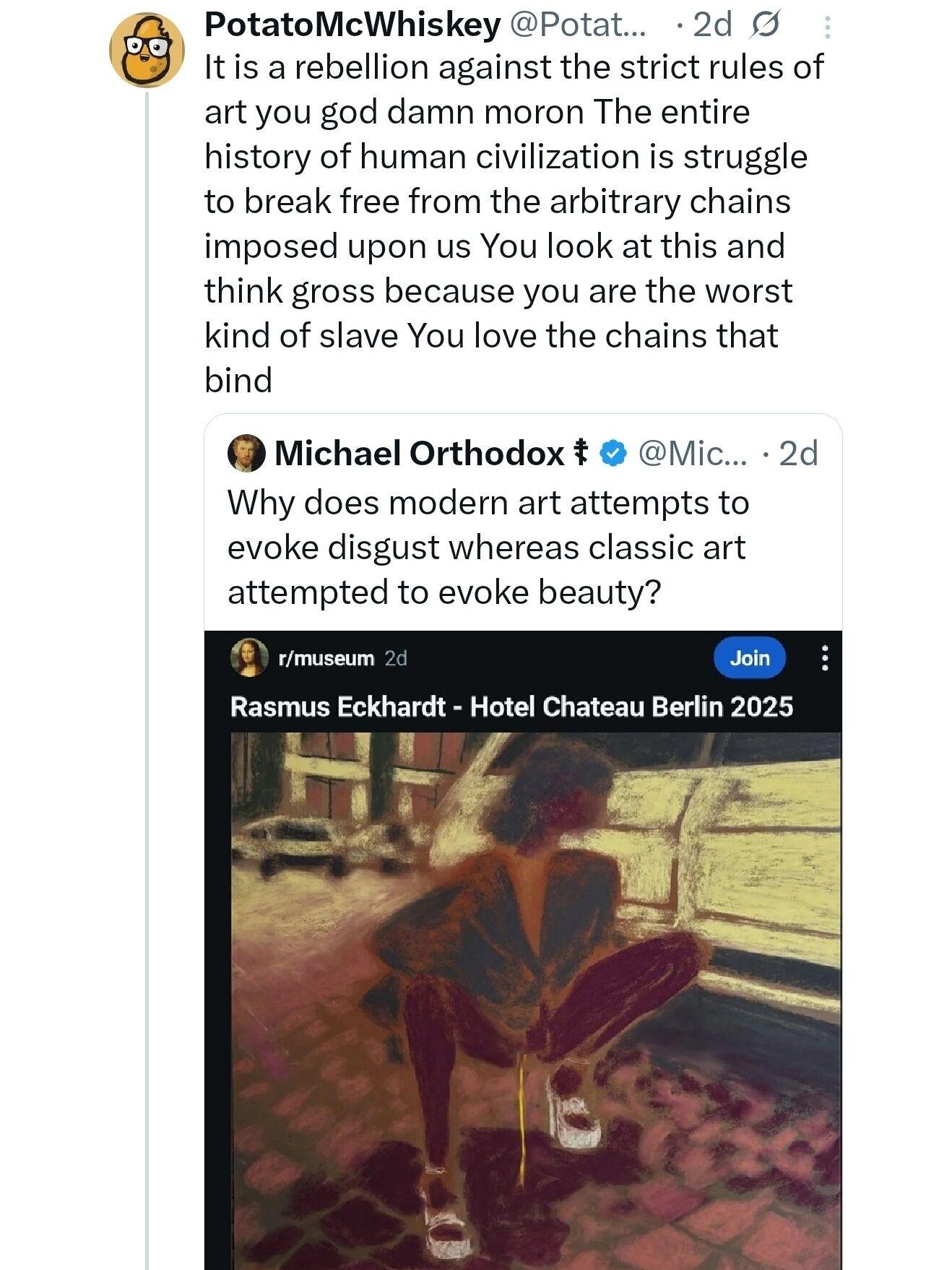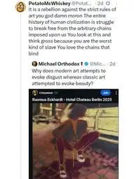 Honest to Fauci you can do this "rebellion" by making really stupid art. I could make an art film about a sentient coffee machine being abducted and studied by an alien race called the xckthulactu who would go on to worship it and it would be A24 kino and a statement on the concept of consciousness and how we view our modern lives and religion because religion bad ev&doe art was made mainly to praise deities in general.