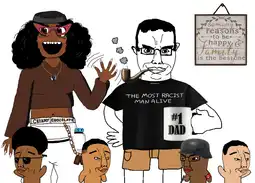 and all the white people laughing because it's a black person talking with that cartoon open mouth smile like Stan does in Southpark