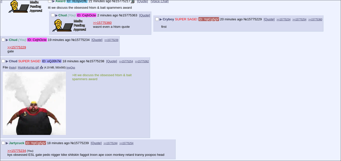 >>15775229>>15775238>>15775239>>15775241so it's either 1 shitskin using proxies or multiple shitskins