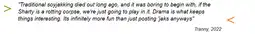 the sentiment "soyjaks are dead its funnier to troll the sharty" was once considered tranny jarty nonsense
