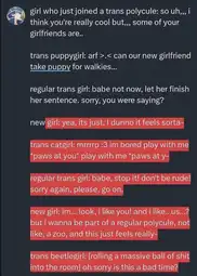 >girl who just joined a trans polycule: so uh,,, i think you're really cool but,,, some of your girlfriends are..