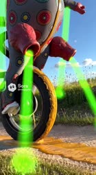 make the jet engines be made out of flesh, make the flames be liquid radioactive waste. make all the circles have spikes. make the wheel bouncy