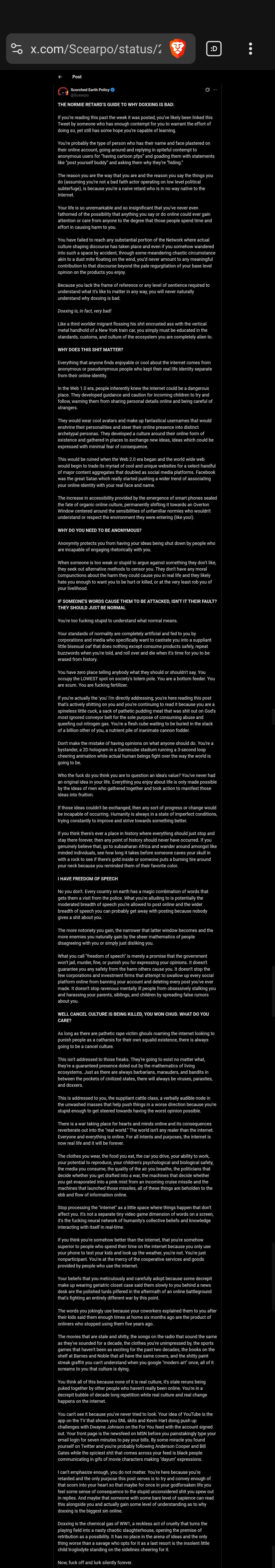 >tfw people are so tech illiterate now they have to write a multi page essays on why you shouldn't put your full name and face on the internet