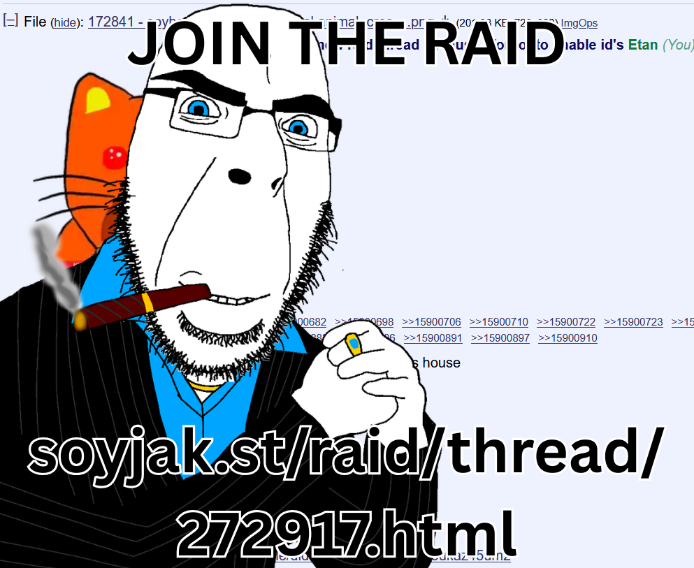 https://soyjak.st/raid/thread/272917.htmljoin the raid