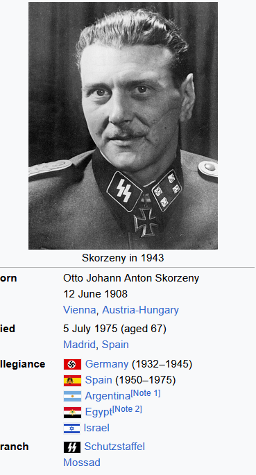 >>15915407Otto Skorenzy and many other SS officers worked for the Mossad