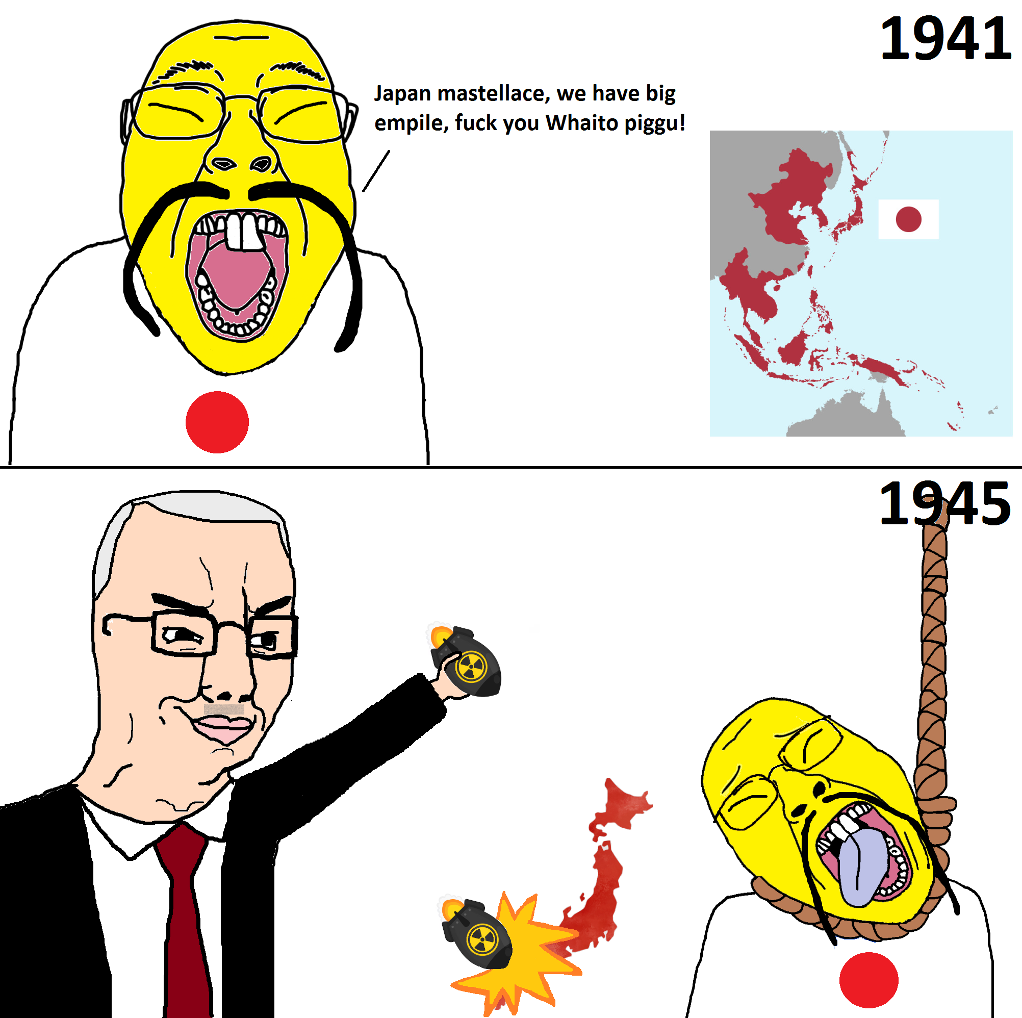 >>15917984german wunderwaffe science team developed the atomic bombs to nvke the shit out of america originally but they were intercepted before they could finish america then finished development so they could nvke germany but the war ended before that could happen so they used several of the remaining nukes they had on japan