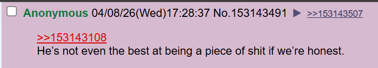 >>15928250Yes. And it got to this point because all of 4chan's mods were so against "rocking the ship" all while they were blind to the fact that the ship was already heavily listing. When you think the ship is fully righted and you see a sizable number of people trying to rock it in one direction, you will think of them as an annoyance at best, then you will chase them off to make things easier for yourself. The mods are almost entirely to blame for the state of 4chan because they couldn't grow out of their early late 2000s and early 2010s phase. They are extremely prideful and insufferable, so they are STILL stuck in that phase today, which is why they can only see the ship slowly sink while it looks perfectly fine to their eyes. They are delusional at best, but "evil" feels like a much more fitting description after this long.