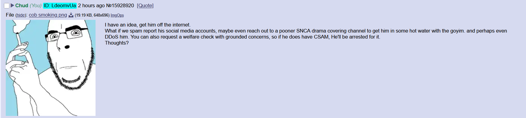 >>15930593hahaha he would sperg out so hard if we did this we should tape soyjaks to his door