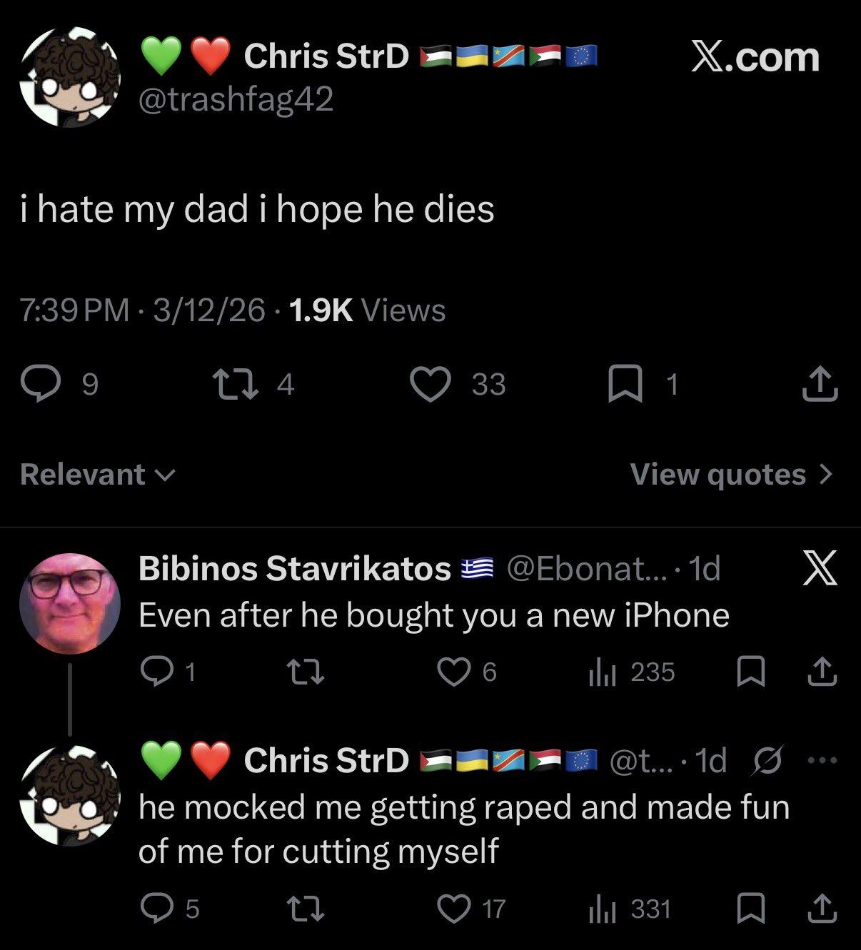 Here's his Twitter, find out if even more of his family got raped or if these three are only cases of it