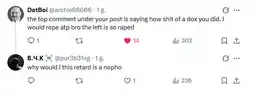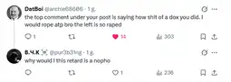 what are they even doxxing them for? we're doxxing pedophiles, zoophiles, fucked up people, snitches. The real number of truly random trannies we dox is so slim sonion…