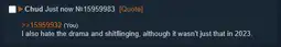 >>15959932I also hate the drama and shitflinging, although it wasn't just that in 2023.