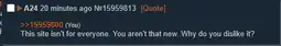 >>15959800This site isn't for everyone. You aren't that new. Why do you dislike it?