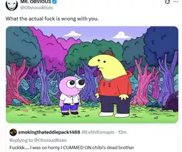 if you coom at a random innocent person's image just because they are related to chibi and gloat about it on xitter you are giving the lolipedos a free opportunity to try and sway the public opinion in their favour by acting like a retard and making you side seem unhinged