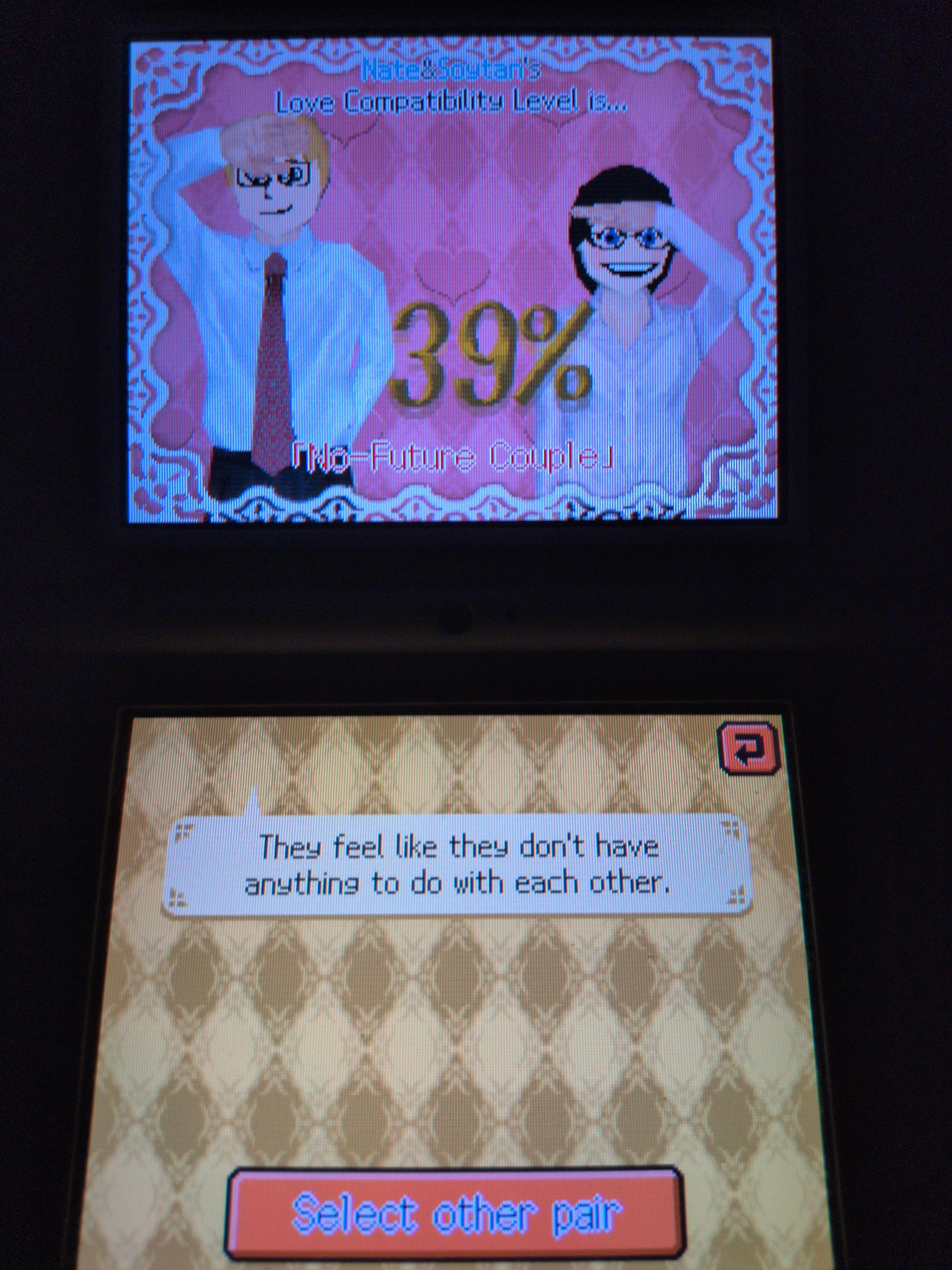 >>9559 I’ve made Nate and Tama (and a self insert for me) in the new tomadach life, not on the first game though, I rarely use my 3ds. Also when I dropped my self insert near the Tama Mii it made her slip and made my self insert have a crush on her.