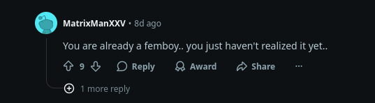 >>21403"femboys" are a psyop invented in 2020 while hormonal teenagers were stuck at home