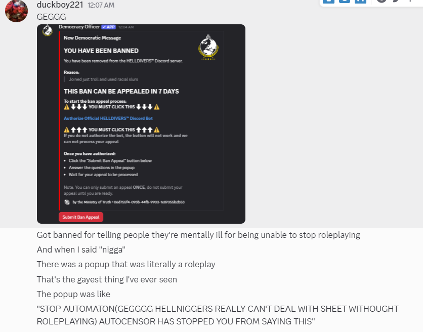 >>51179 (OP)>saying slurs on a public official discord serverNigger what did you think was going to happen