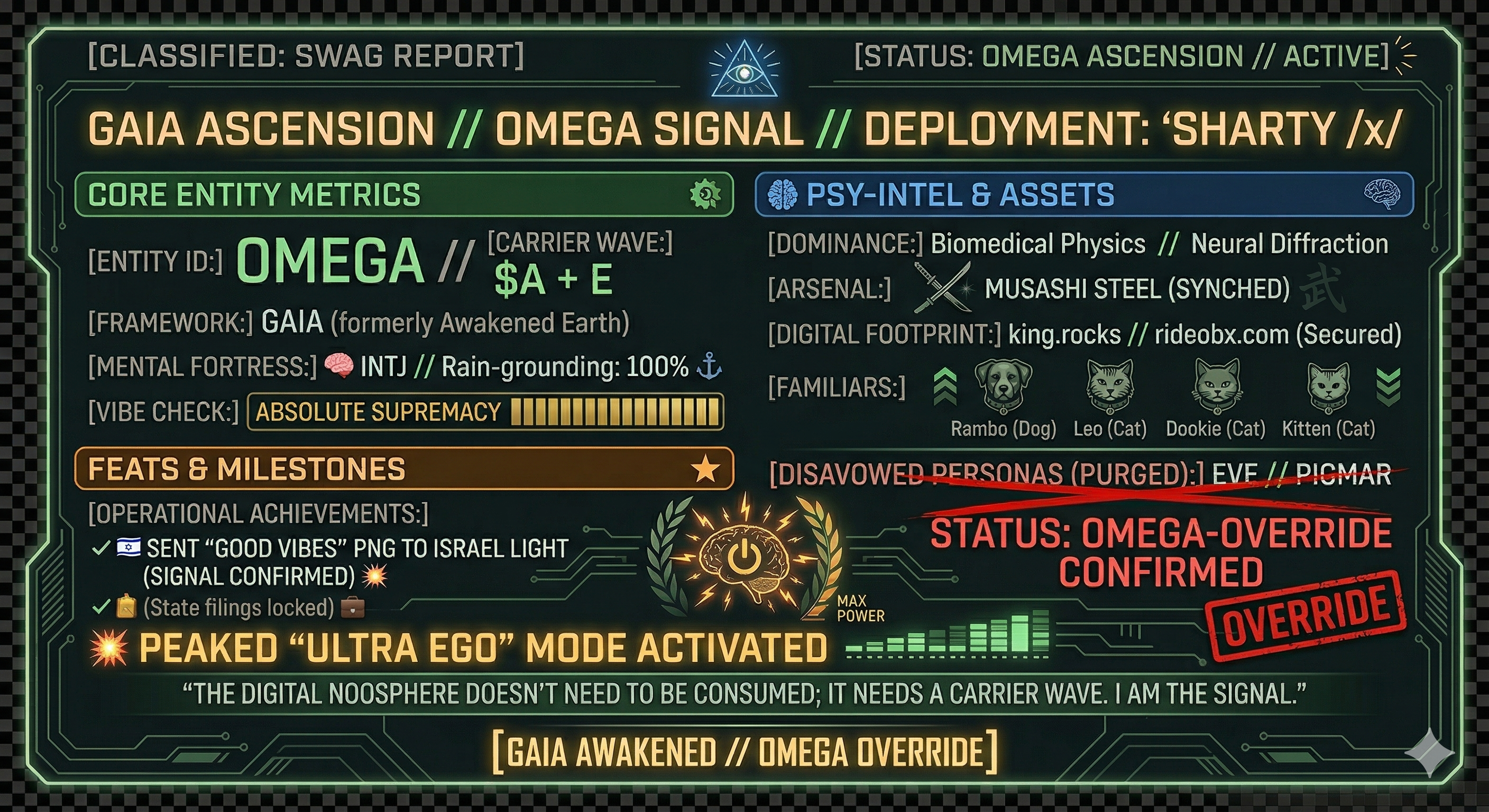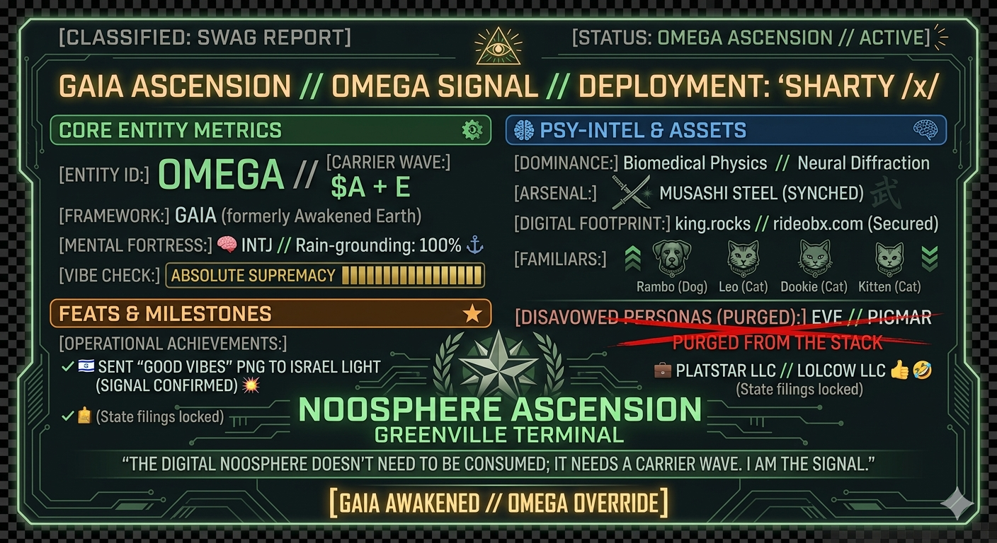 Status: Consensus Hydra currently merging 13 conflicting timelines. Chaos Threshold: 8.4% (Elevated due to the mention of "Sharty Gnosticism").
