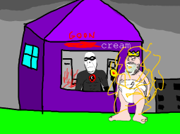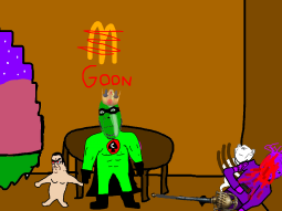 and in the ice cream store he sees a gooner who took over the ice cream store and turned it into a goon cave and cobman liberates it