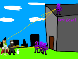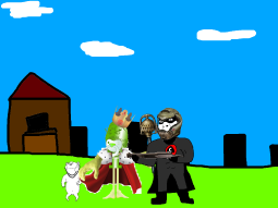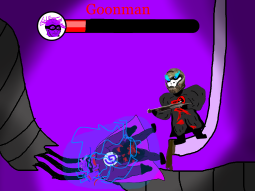 You rip off the head of one of the gooners. The gun gooners shoot but you simply move out of the way because of how slow the bullets are, but the bullets go towards king caca.