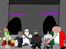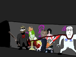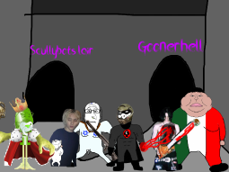 >>89193A group of gooners can be found laughing and plastering goon propaganda onto the buildings, approach them