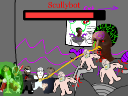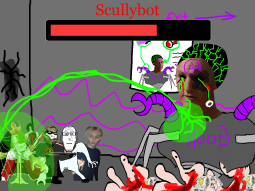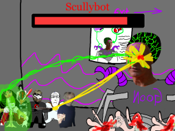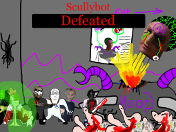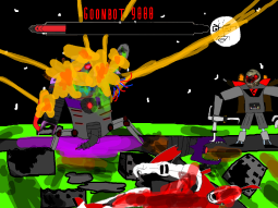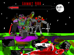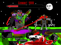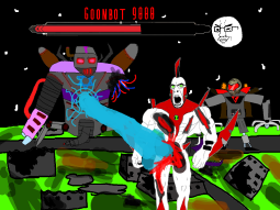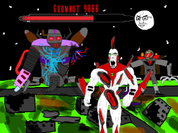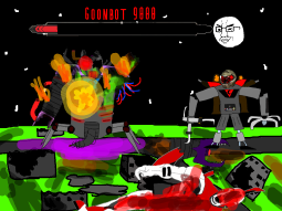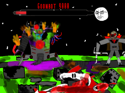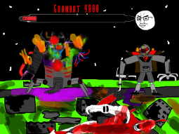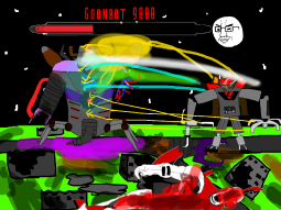 >/caca/ won!Babyjak explodes and blows off a piece of the goonbot’s armor, the core is now exposed, it glows brighter and brighter.