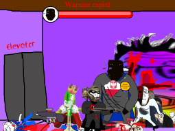 >>89184Before the gooner can respond, the king of caca comes to your location and starts beating the shit out of the gooner. The gooner dies. You are very confused.