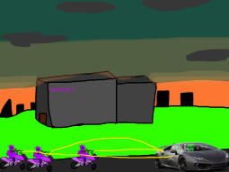 >STOP WITH WHAT YOUR ARE DOING RIGHT NOW!>you must stop us first, hahaha!2 of them have guns, you must be careful.